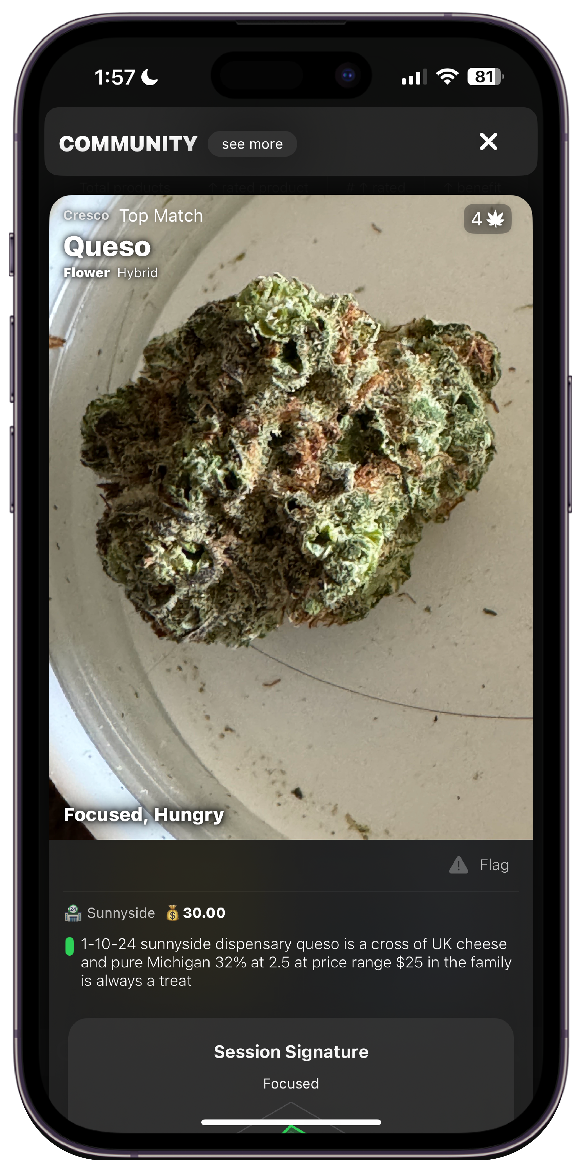Explore our app to empower your cannabis journey with personalized insights and community support. Discover tools to make informed choices and connect with others like you.